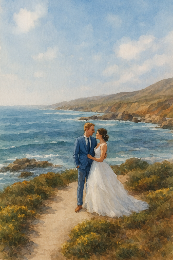 Nicky and Sophie’s ceremony will begin about 5:30 PM at the beautiful Garrapata State Park, where they’ll exchange vows in an intimate, cliffside setting overlooking the ocean. It will be a standing ceremony—simple, scenic, and full of love. We recommend bringing a layer or two in case the coastal breeze picks up! Afterward, there will be family photos and a few of just the two of them. Guests are welcome to head out at any time to make their way to dinner.